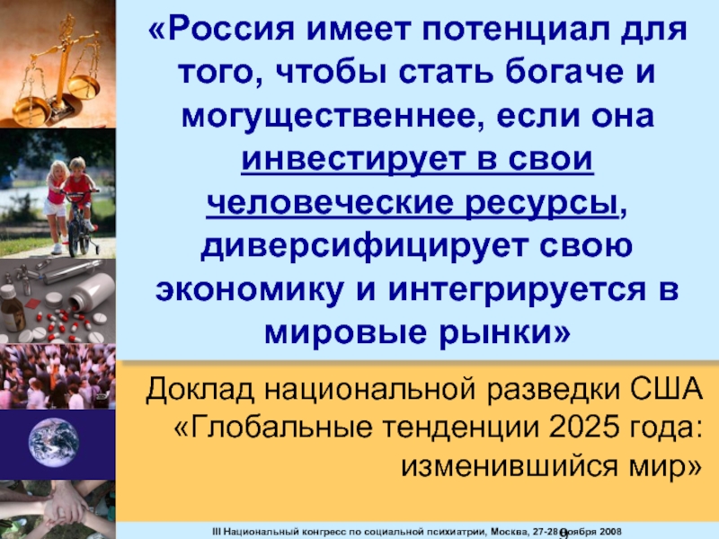 Слайд 9«Россия имеет потенциал для того, чтобы стать богаче и могущественнее, если