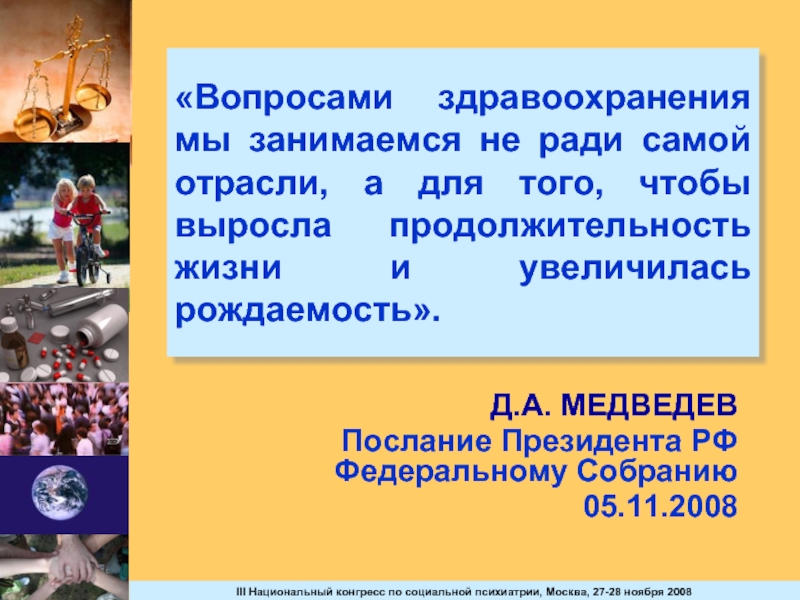 Слайд 5«Вопросами здравоохранения мы занимаемся не ради самой отрасли, а для того,