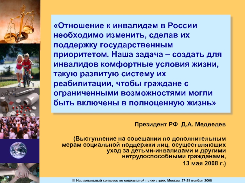 Слайд 87«Отношение к инвалидам в России необходимо изменить, сделав их поддержку государственным