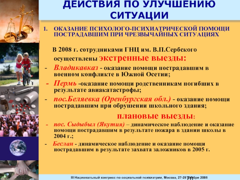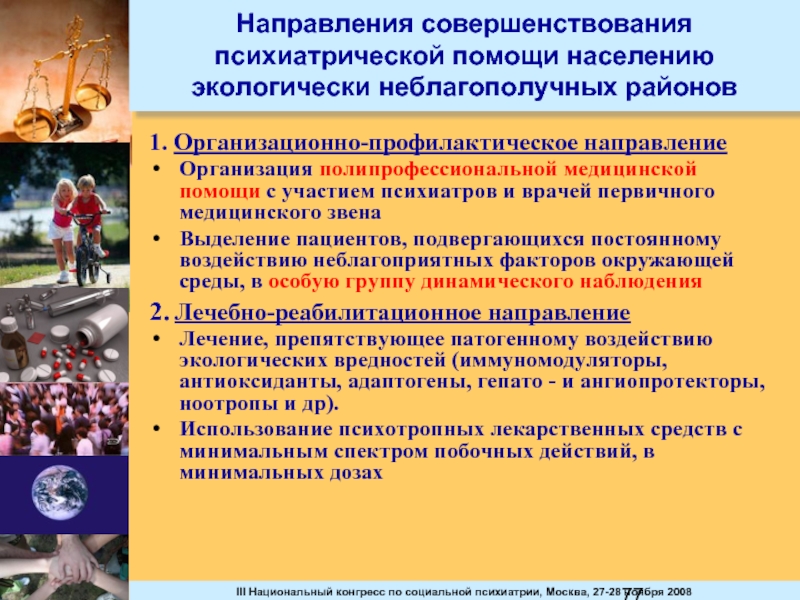 Слайд 77Направления совершенствования психиатрической помощи населению экологически неблагополучных районов