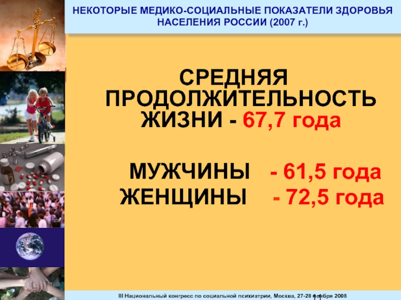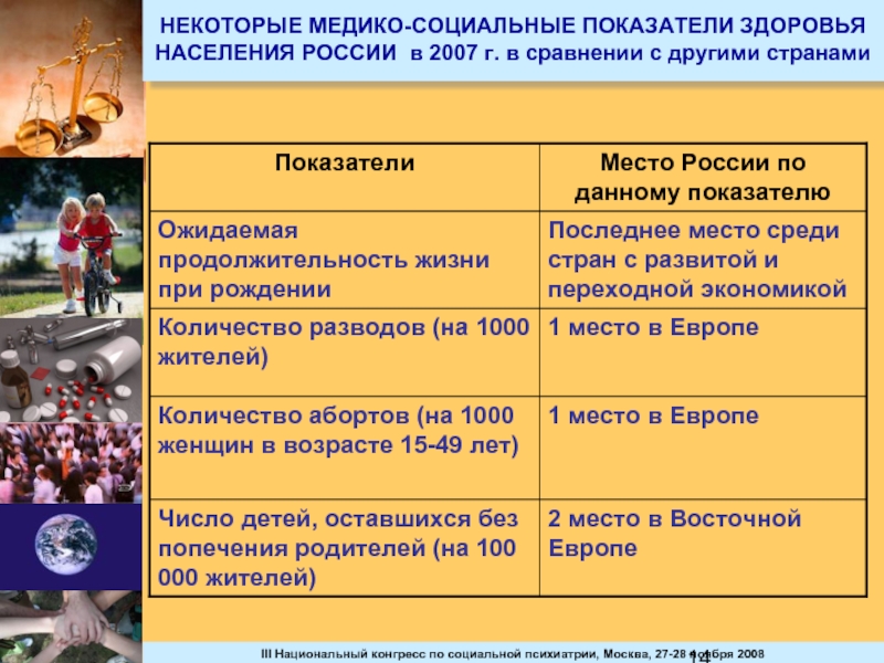 Слайд 10НЕКОТОРЫЕ МЕДИКО-СОЦИАЛЬНЫЕ ПОКАЗАТЕЛИ ЗДОРОВЬЯ