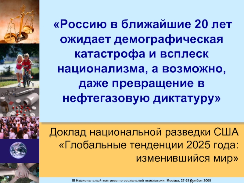 Слайд 8 «Россию в ближайшие 20 лет ожидает демографическая катастрофа и всплеск