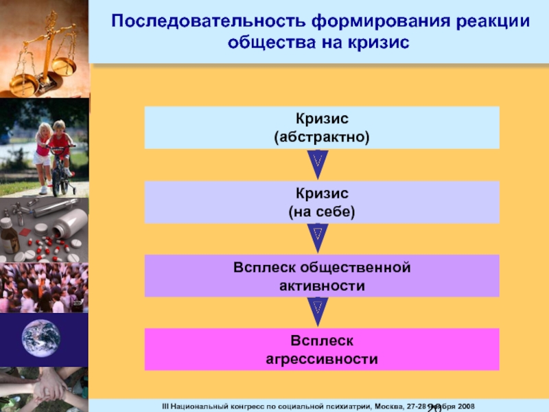 Слайд 20 Последовательность формирования реакции общества на кризис
