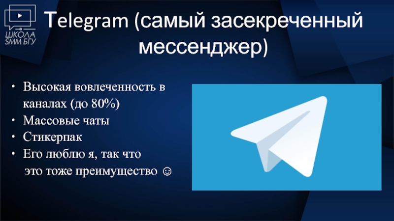 Слайд 14Тelegram (самый засекреченный мессенджер)