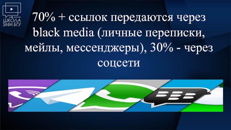 Слайд 1070% + ссылок передаются через black media (личные переписки, мейлы, мессенджеры),