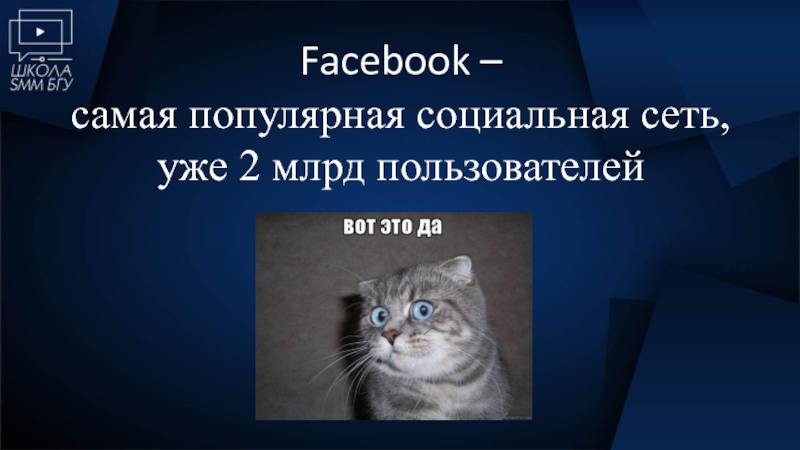 Слайд 2Facebook – самая популярная социальная сеть, уже 2 млрд пользователей
