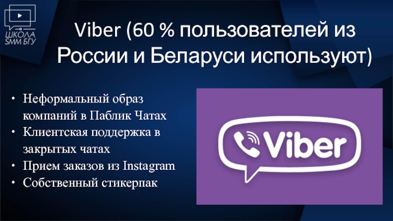 Слайд 13Viber (60 % пользователей из России и Беларуси используют)