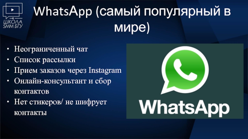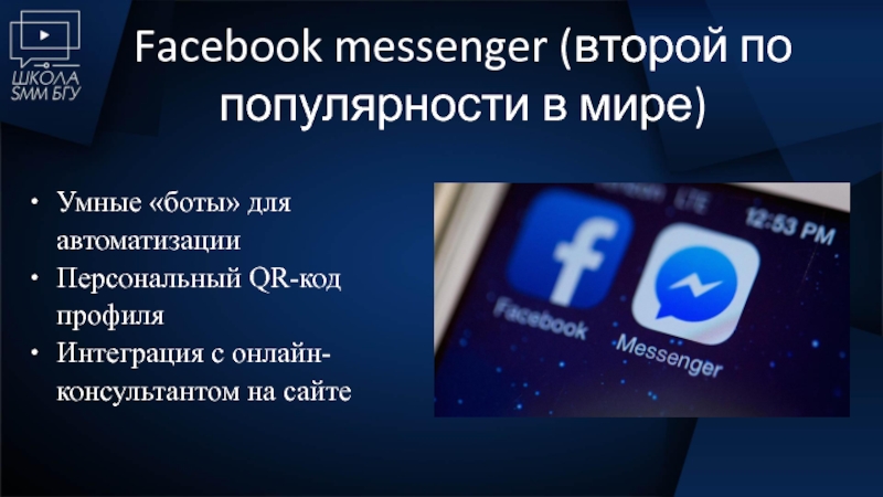 Слайд 11Facebook messenger (второй по популярности в мире)