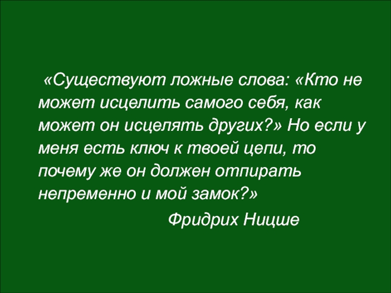 Слайд 13 «Существуют ложные слова: «Кто не может исцелить самого себя, как может