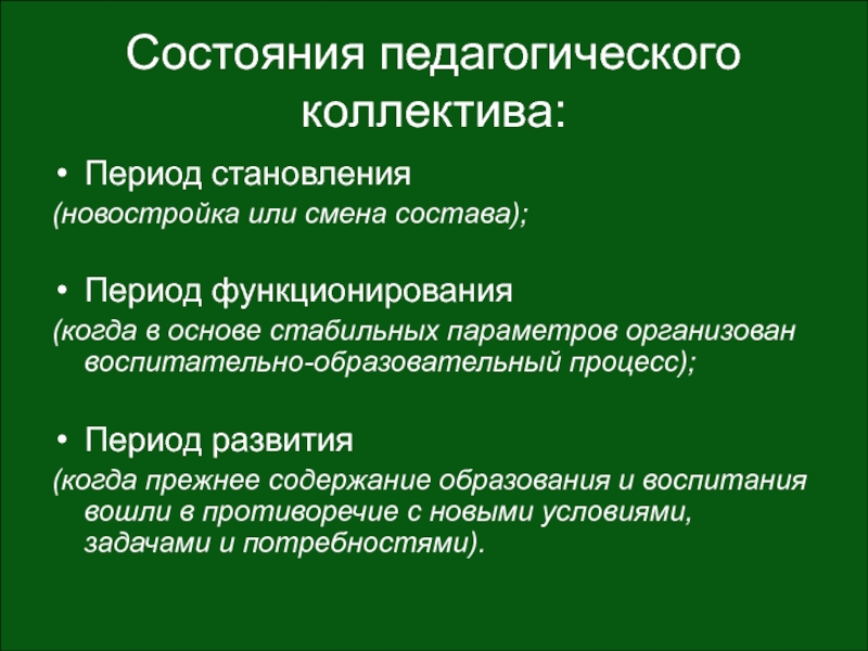 (когда прежнее содержание образования и воспитания вошли в противоречие с новыми условиями, задачами и потребностями).