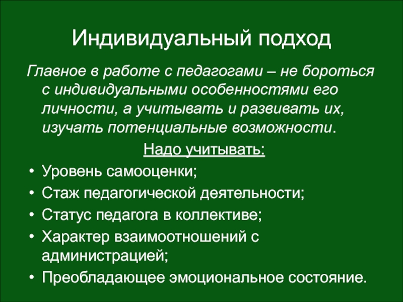 особенностями его личности, а учитывать и развивать их, изучать потенциальные возможности.