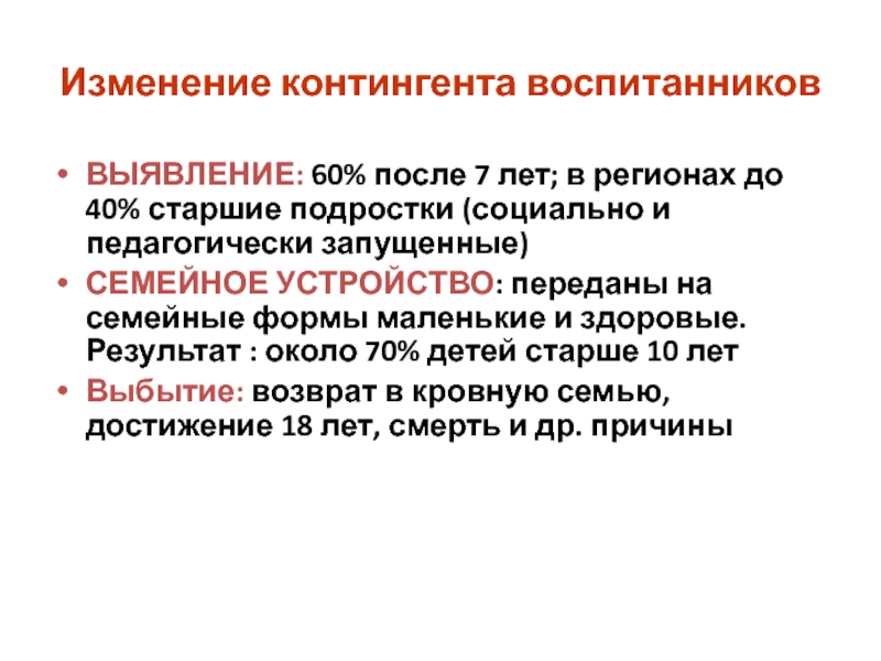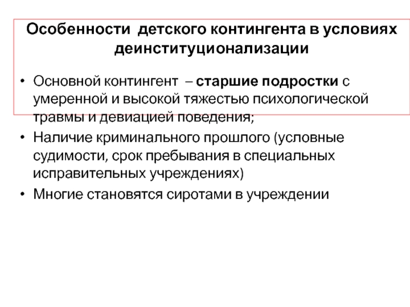 Слайд 7Особенности детского контингента в условиях деинституционализации