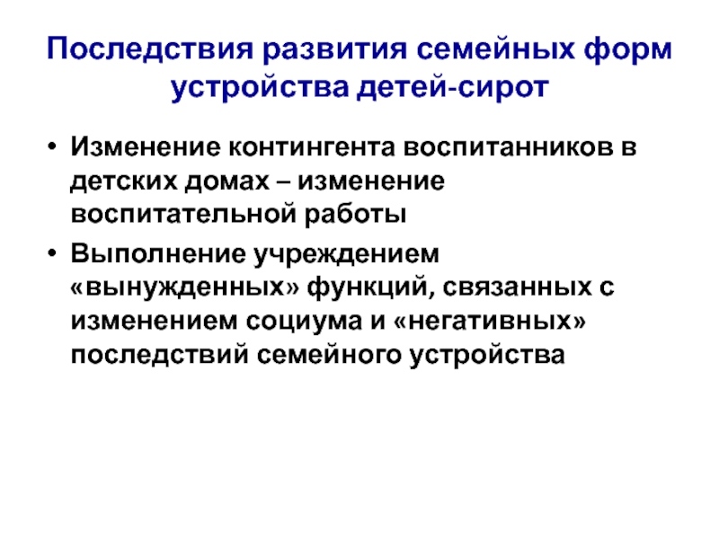 Слайд 11Последствия развития семейных форм устройства детей-сирот