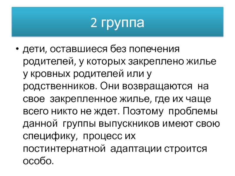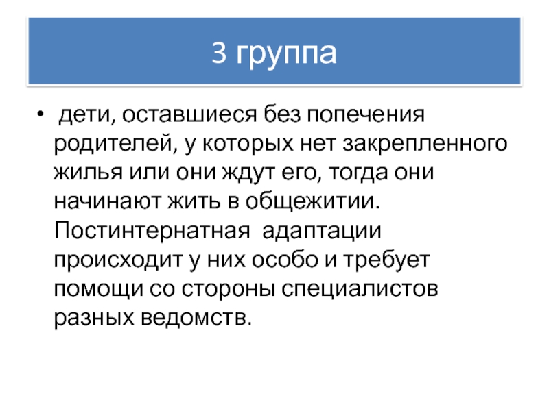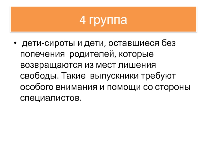 Слайд 14Особыми группами «риска» социализации в постинтернатный период оказываются