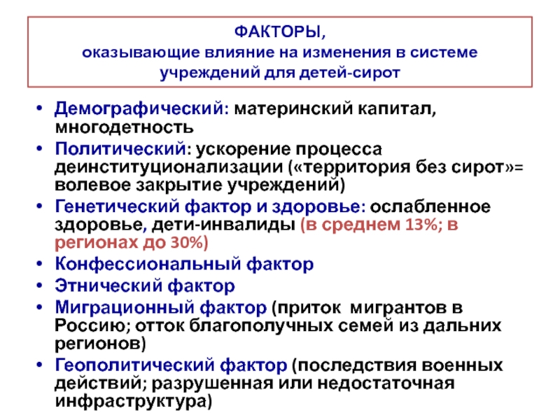 оказывающие влияние на изменения в системе учреждений для детей-сирот