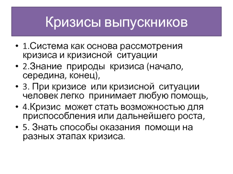 5. Знать способы оказания помощи на разных этапах кризиса.
