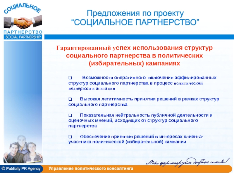Гарантированный успех использования структур социального партнерства в политических (избирательных) кампаниях