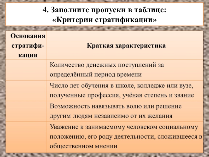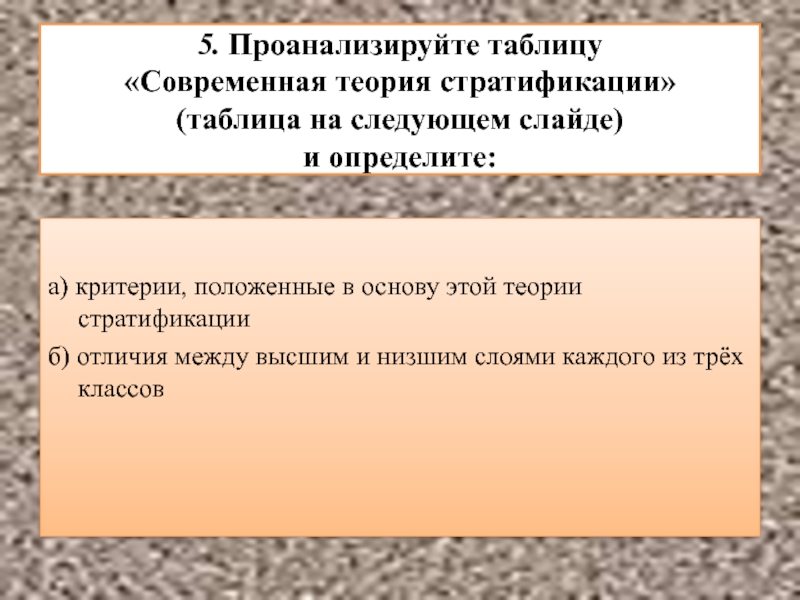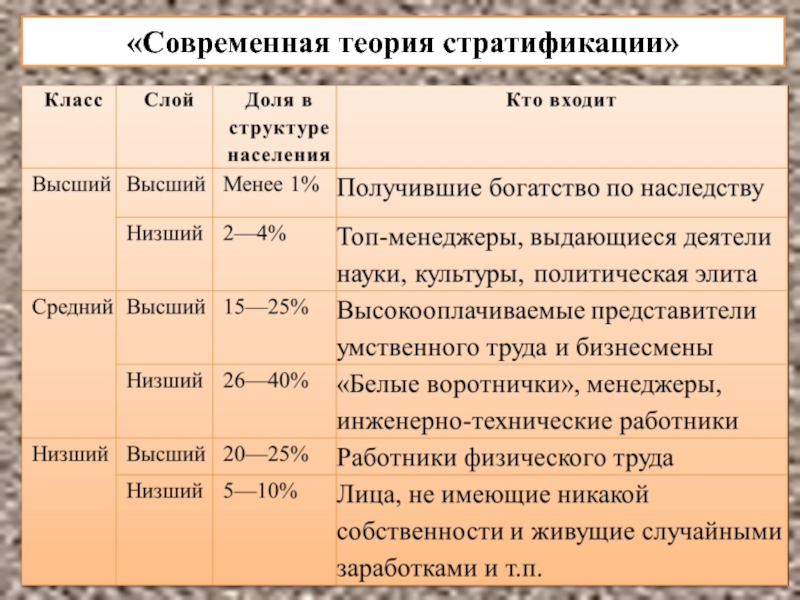 а) критерии, положенные в основу этой теории стратификации