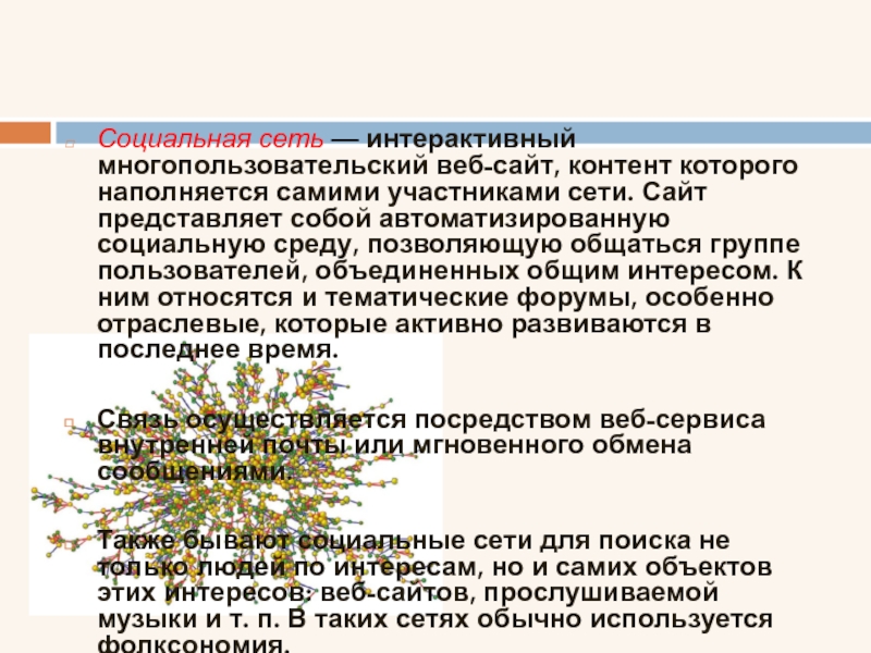 Социальная сеть — интерактивный многопользовательский веб-сайт, контент которого наполняется самими участниками