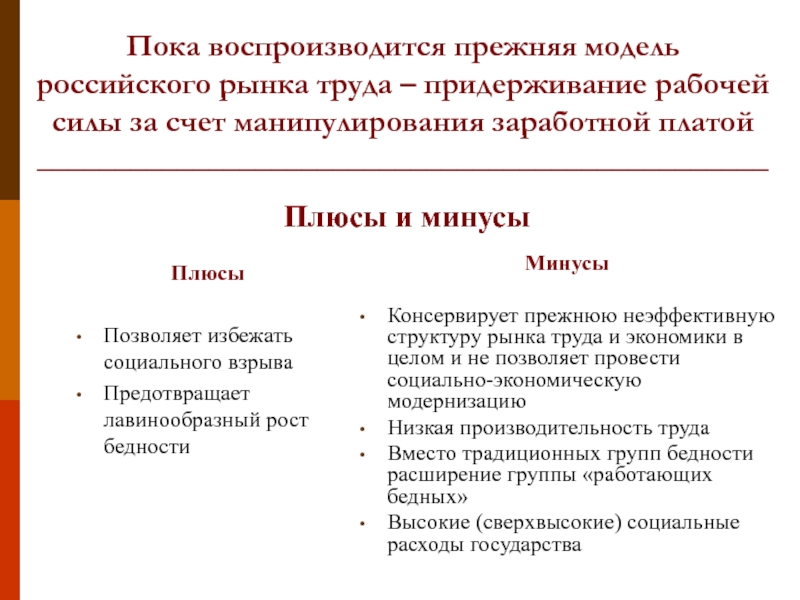 российского рынка труда – придерживание рабочей силы за счет манипулирования заработной платой