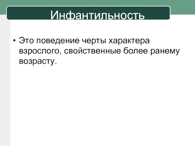Это поведение черты характера взрослого, свойственные более ранему возрасту.