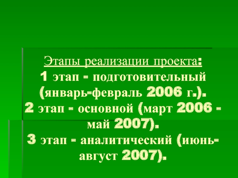 Сроки реализации проекта: Январь 2006 г. - август 2007 г.