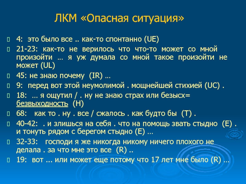 18: … я ощутил / . ну не знаю страх или безысх= безвыходность (H)