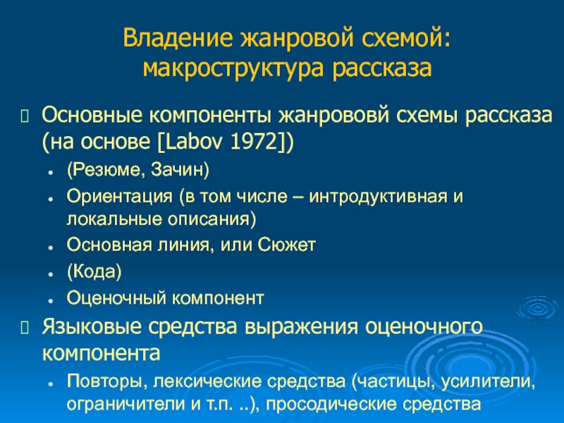 Слайд 16Владение жанровой схемой: макроструктура рассказа