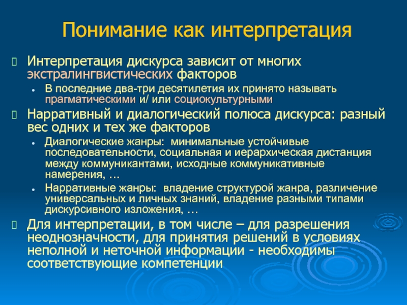 Интерпретация дискурса зависит от многих экстралингвистических факторов