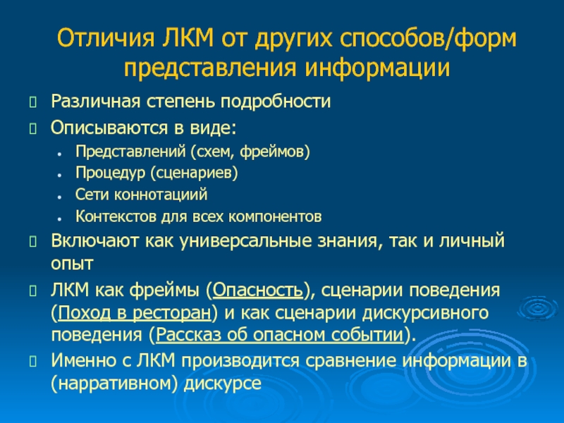 Слайд 8Отличия ЛКМ от других способов/форм представления информации