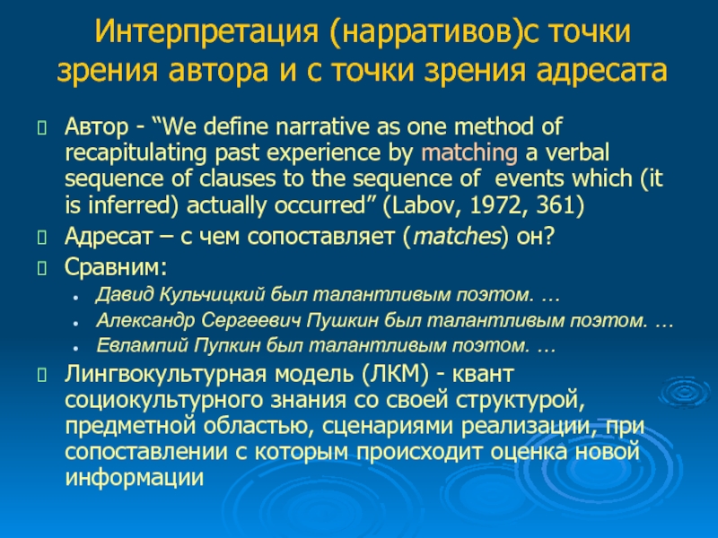 Слайд 6Интерпретация (нарративов)с точки зрения автора и с точки зрения адресата