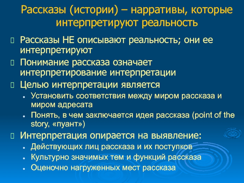 Слайд 15Рассказы (истории) – нарративы, которые интерпретируют реальность