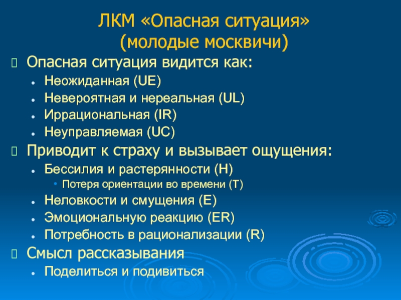 ЛКМ как фреймы (Опасность), сценарии поведения (Поход в ресторан) и как сценарии дискурсивного поведения (Рассказ об опасном событии).