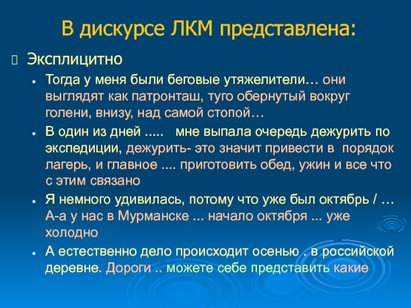 Слайд 13Обсуждение ЛКМ в дискурсе
