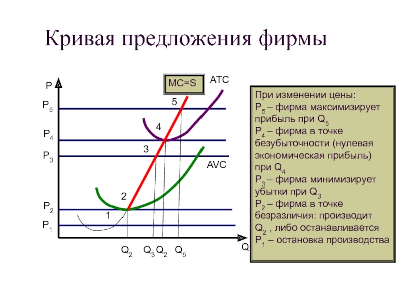 Кривая предельных издержек конкурентной фирмы в краткосрочном периоде будет одновременно ее кривой предложения для этого периода (при МС >AVCmin )