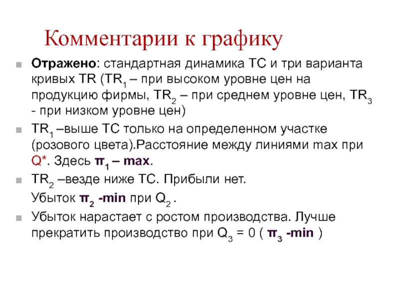 TR1 –выше ТС только на определенном участке (розового цвета).Расстояние между линиями max при Q*. Здесь π1 – max.