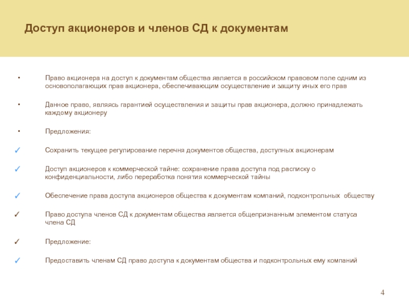 Обеспечение права доступа акционеров общества к документам компаний, подконтрольных обществу