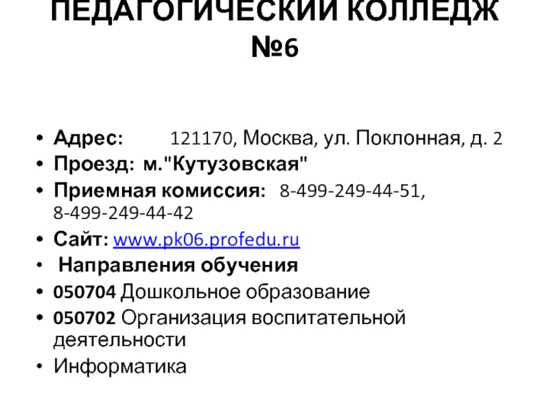 ПЕДАГОГИЧЕСКИЙ КОЛЛЕДЖ №6
