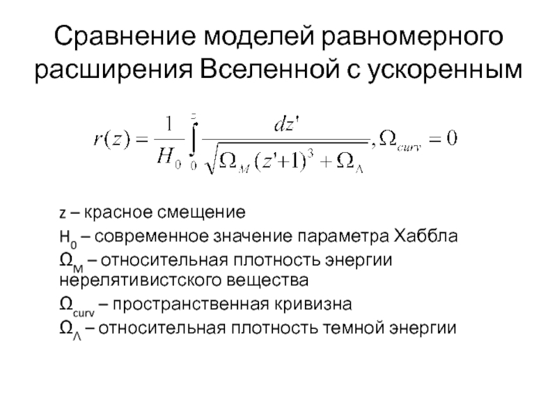 Слайд 6Сравнение моделей равномерного расширения Вселенной с ускоренным
