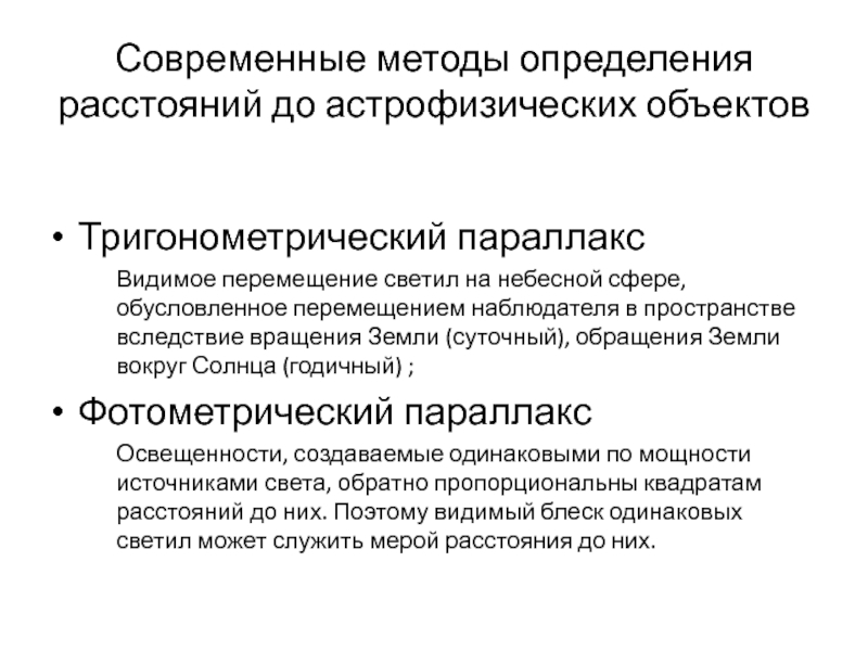 Слайд 3Современные методы определения расстояний до астрофизических объектов