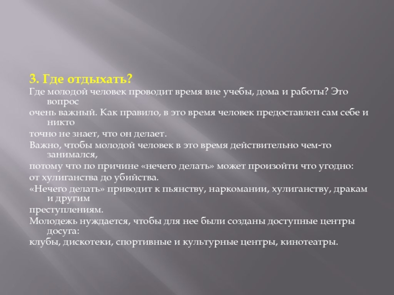 Молодежь нуждается, чтобы для нее были созданы доступные центры досуга: