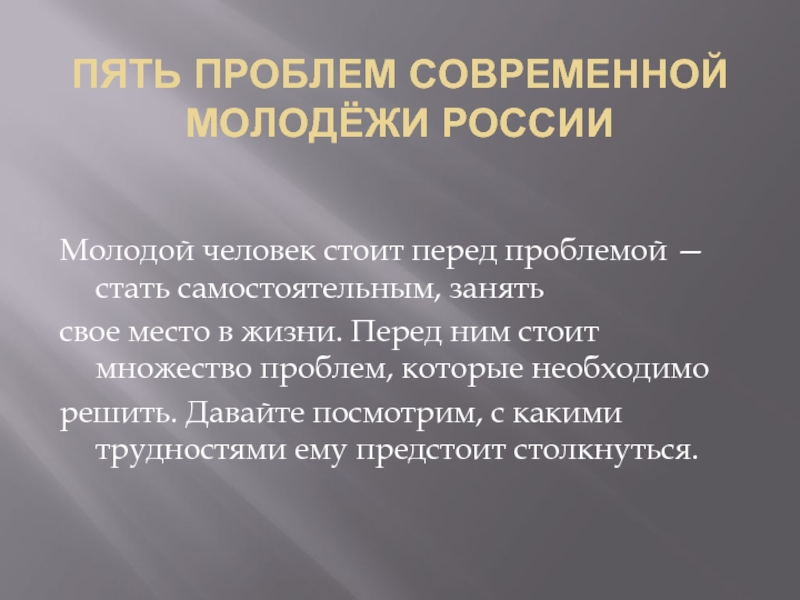 ПЯТЬ ПРОБЛЕМ СОВРЕМЕННОЙ МОЛОДЁЖИ РОССИИ