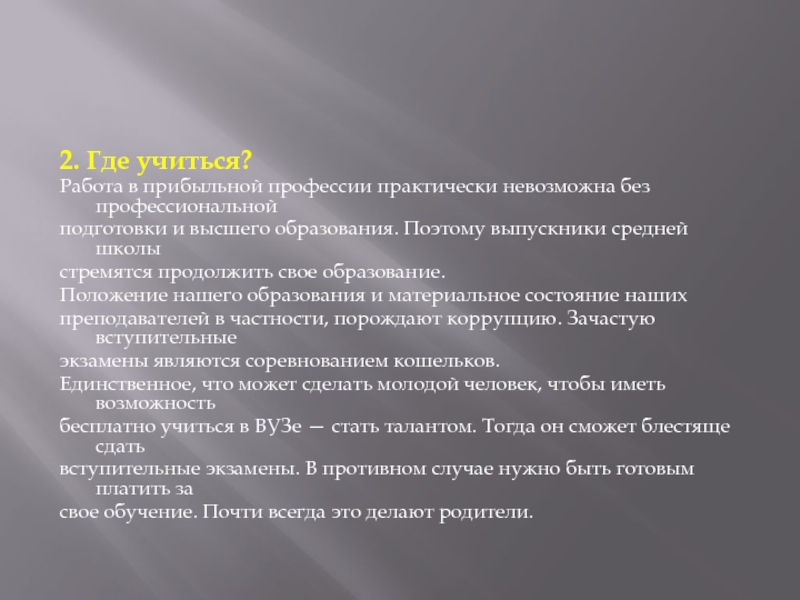 преподавателей в частности, порождают коррупцию. Зачастую вступительные