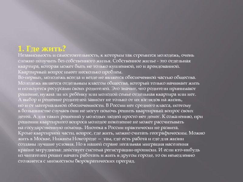 1. Где жить?