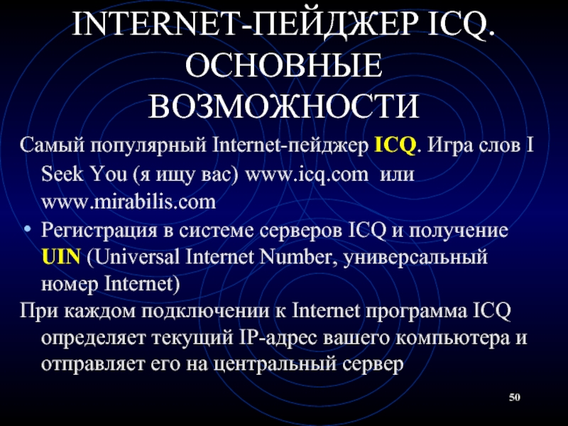 Слайд 50INTERNET-ПЕЙДЖЕР ICQ.