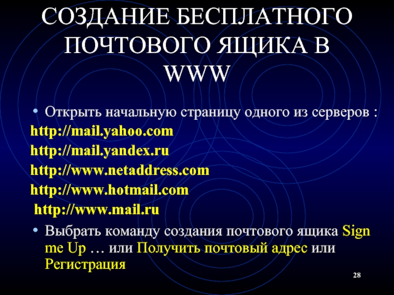 Слайд 10СОВРЕМЕННАЯ ПОЧТА INTERNET