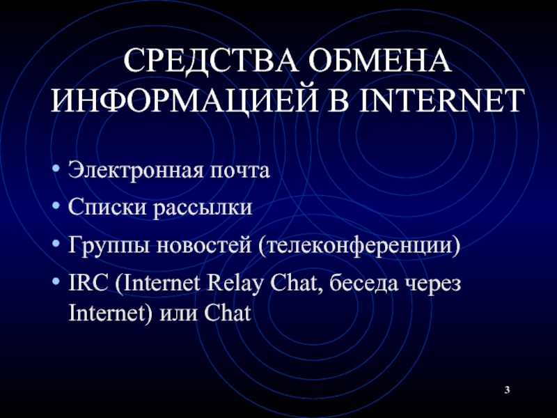 Слайд 3СРЕДСТВА ОБМЕНА ИНФОРМАЦИЕЙ В INTERNET