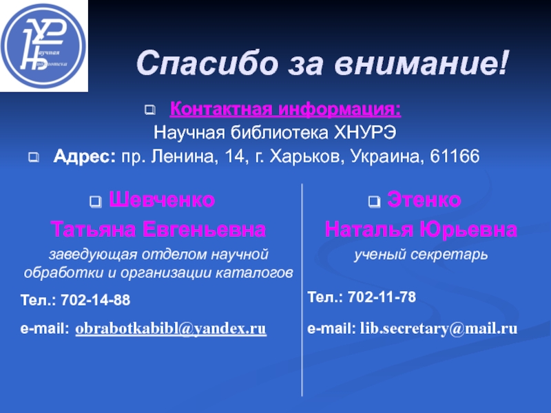Современное состояние системы каталогов и картотек вузовских библиотек Харькова