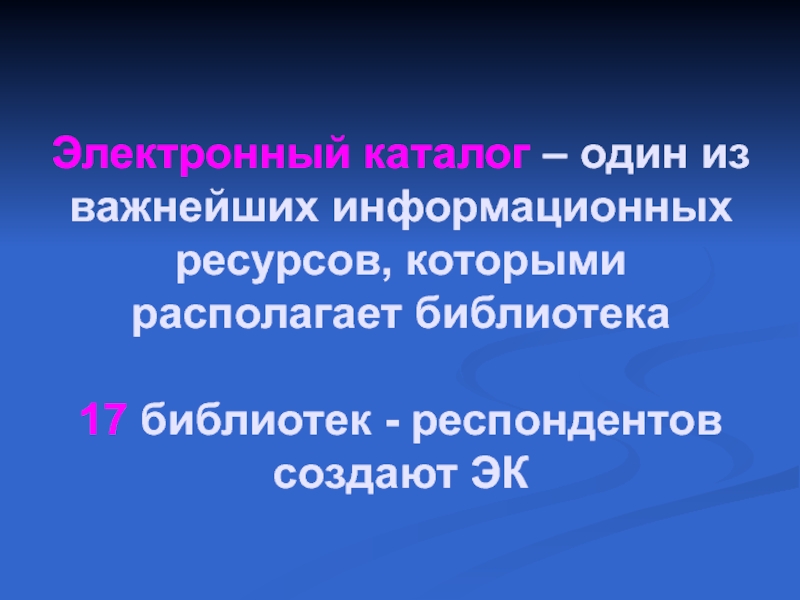 Слайд 14Электронный каталог – один из важнейших информационных ресурсов, которыми располагает библиотека