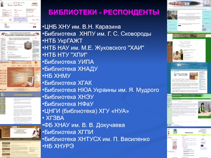 Слайд 4БИБЛИОТЕКИ - РЕСПОНДЕНТЫ